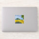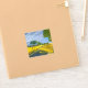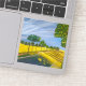 Golden Fields and Path captures a peaceful countryside road where vibrant yellow fields meet deep, long tree shadows under a soft blue sky.