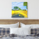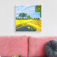 Golden Fields and Path captures a peaceful countryside road where vibrant yellow fields meet deep, long tree shadows under a soft blue sky.