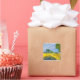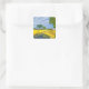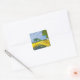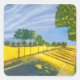 Golden Fields and Path captures a peaceful countryside road where vibrant yellow fields meet deep, long tree shadows under a soft blue sky.