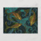 Postkarte mit schwarzer und aquamariner Version von "Golden Fish" - animalisches Gemälde, drei goldgelbe Fische. Weiche Pasten auf Papier, digitale Manipulationen2017 © Clipso-Callipso/ Julia Khoroshikh www.juliakhoroshikh.art #nautical #underwaterartn #fish #fish #pastelpainting #pastelpainting #underwater #postcards #greetingcards #zazzlemade