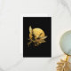 A majestic red-crowned crane soars before a luminous golden moon, rendered in rich black and gold Japanese illustration style.