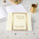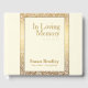 Goldener Rahmen mit Blumenmuster (wie ein Holzschnitt) inspiriert von Kunst und Handwerk. Individuell anpassbares Vintages Begräbnisgastbuch. Sie können die Hintergrundfarbe und den Text (Farbe, Schriftart, Größe und Position) leicht ändern, indem Sie auf die Schaltfläche Anpassen klicken. Verfügbar in einem Spiralnotebook. Matching Memorial Service-Einladung.