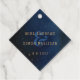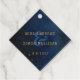Dieses ethische Galaxiedesign ist perfekt für eine moderne, skurrile Hochzeit. Das Design zeigt eine dunkelblaue Aquarellgalaxie mit Sternen und einem goldenen geometrischen Rahmen.
