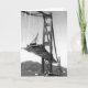 Diese Fotografie, im Jahre 1936 genommen, zeigt Golden gate bridge während des Baus. Die Fahrbahnabschnitte sind über der Bucht, warteten, zu den mächtigen Suspendierungskabeln oben befestigt zu werden freitragend.