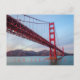 Die majestätische Golden Gate Bridge steht bei Sonnenuntergang hoch gegen den blauen Himmel.
