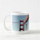 Ein einzigartiges Foto der Golden Gate Bridge in San Francisco, Kalifornien. Eines der massiven Seile der Aufhängung erhebt sich über den Kopf, der sich aus der oberen rechten Ecke des Bildes bis zum Gipfel eines rot-orangefarbenen Turms in der Nähe der Mitte erstreckt. Das Aufhängekabel auf der links scheint dünn zu sein, da es den Mittelpunkt des links Rahmengerändes trifft, die Brücke, die durch die Perspektive asymmetrisch gemacht wird. Von den Hauptkabeln hängen Treppenpaare, die an der links Brückenseite, die dem klaren blauen Himmel in der unteren links Ecke des Fotos einen Nadelstreifen-Effekt verleihen. Ohne die Straße im Blick wird die Geometrie der bemalten internationalen Orange-Brücke gegen den blauen Himmel betont. Um das Foto auf der Golden Gate Bridge zu sehen, klicken Sie auf den Link "Rocklawn Arts" unten. 35 mm, Farbfoto. Copyright ©Claire E. Skinner. Alle Rechte vorbehalten.