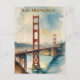 Mit dieser traumhaften Aquarellpostkarte mit der goldenen Gate Bridge erleben Sie den Charme San Franciscos. Mit sanften Pinselstrichen und einem sonnigen Himmel ist diese Postkarte perfekt für Reisende, Sammler und Liebhaber der Schönheit der Westküste. Ein großartiges Souvenir, Sake oder Geschenk für diejenigen, die die berühmteste Sehenswürdigkeit Kaliforniens lieben.