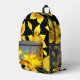Golden gelben dekorativen Blumen Design AI Kunst erstellt von Zenya Zenyaris 2024. Das helle Blumendesign ist großartig auf diesem Rucksack, es macht es leichter, leichter zu tragen und zu genießen. Gelbe Farbe bedeutet Freude und Glück, so ist gut, um zu haben!