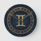 Golden Gemini Zodiac Circle With Starry Night Runde Wanduhr