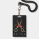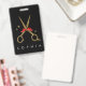 Diese goldene Glitzer-Schere ist ein perfektes Namensschild für Ihr Unternehmen. Text leicht anzupassen! Eine klassische Kombination aus Schwarz und Gold. Elegante Haarstylistin-Vorlage mit rotem Band. So können sich Ihre Kunden an Ihren Namen erinnern!