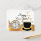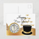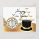 A Festive Golden Clock Happy New Year Postcard With Top Hat And Glasses Of Champagne