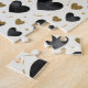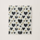Elegant and modern, this puzzle design features a stunning seamless pattern of hearts in contrasting textures. Large, inky black watercolor hearts anchor the composition, while smaller, shimmering gold glitter hearts add a touch of sparkle. Scattered throughout are delicate gold flecks and hand-painted lines, all set against a clean, off-white canvas. The repetitive nature of the hearts paired with the distinct textures of the "paint" and "glitter" provides a satisfying, rhythmic assembly experience that is both stylish and fun.