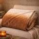 Radiant hearth theme in rich chocolate brown, featuring soft ivory brush strokes that fade upward with a subtle gold sweep along the base. This neutral statement layer suits sofa styling, bed draping, or armchair accents, pairing beautifully with taupe cushions and cream interiors for a grounded, refined home setting.