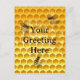 This card feels like a view inside a bee hive with a golden honeycomb and three flying bees. The front of the card can display your custom greeting or in either large or small text with honey flowing over the words. The back has two pretty bees to accentuate your message.