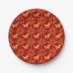 Elegant Chinese New Year paper plates featuring golden horse with Greek Ornament Frame pattern on a red color backdrop.