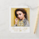 Ein Postkartenstil Save the Date auf Spanisch mit Foto und Sondertext. Goldene Akzente und Text, von denen einige digital erstellt werden, um wie echtes Goldblatt auszusehen.