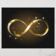 Gold, Schmuck-Unendlichkeitssymbol mit goldenen Sternen auf schwarzem Hintergrund. Design mit Goldstar.