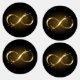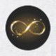 Gold, Schmuck-Unendlichkeitssymbol mit goldenen Sternen auf schwarzem Hintergrund. Design mit Goldstar.