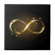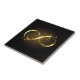 Gold, Schmuck-Unendlichkeitssymbol mit goldenen Sternen auf schwarzem Hintergrund. Design mit Goldstar.