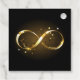 Gold, Schmuck-Unendlichkeitssymbol mit goldenen Sternen auf schwarzem Hintergrund. Design mit Goldstar.