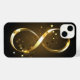 Gold, Schmuck-Unendlichkeitssymbol mit goldenen Sternen auf schwarzem Hintergrund. Design mit Goldstar.
