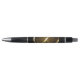 Gold, Schmuck-Unendlichkeitssymbol mit goldenen Sternen auf schwarzem Hintergrund. Design mit Goldstar.