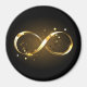 Gold, Schmuck-Unendlichkeitssymbol mit goldenen Sternen auf schwarzem Hintergrund. Design mit Goldstar.
