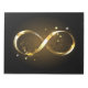 Gold, Schmuck-Unendlichkeitssymbol mit goldenen Sternen auf schwarzem Hintergrund. Design mit Goldstar.
