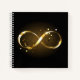 Gold, Schmuck-Unendlichkeitssymbol mit goldenen Sternen auf schwarzem Hintergrund. Design mit Goldstar.