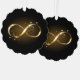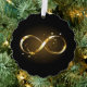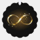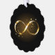 Gold, Schmuck-Unendlichkeitssymbol mit goldenen Sternen auf schwarzem Hintergrund. Design mit Goldstar.