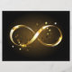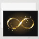 Gold, Schmuck-Unendlichkeitssymbol mit goldenen Sternen auf schwarzem Hintergrund. Design mit Goldstar.