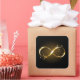 Gold, Schmuck-Unendlichkeitssymbol mit goldenen Sternen auf schwarzem Hintergrund. Design mit Goldstar.