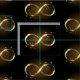 Gold, Schmuck-Unendlichkeitssymbol mit goldenen Sternen auf schwarzem Hintergrund. Design mit Goldstar.