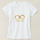 T - Shirt mit goldenem Unendlichkeitssymbol. Text "MOVE ON" kann personalisiert sein. Unendlichkeitssymbol bedeutet, dass wir alle Teil eines Lebenszirkels sind und in einem unendlichen Tanz des Lebens vereint sind.