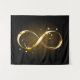 Gold, Schmuck-Unendlichkeitssymbol mit goldenen Sternen auf schwarzem Hintergrund. Design mit Goldstar.