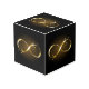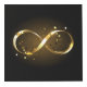 Gold, Schmuck-Unendlichkeitssymbol mit goldenen Sternen auf schwarzem Hintergrund. Design mit Goldstar.