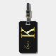Golden K Name Gepäckmarke mit Details auf der Rückseite.