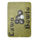 Auf Gold gemalt sind vier schwarze Rasenschüsseln mit Jack und einem dekorativen Rasentext