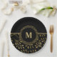 Golden Leaf Muster Schwarz & Gold Elegantes Monogr Pappteller