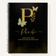Eleganter Goldbrief P mit zarten Schmetterlingen und botanischen Akzenten, als luxuriöses Notebook-Cover konzipiert. Dieses Premium-Design eignet sich perfekt für Journalisten, Schulen oder Geschenke. Es bietet eine individuelle Namensoption für eine persönliche und elegante Touch.
