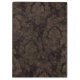 A decorative mask adorned with intricate, brown damask patterns and vibrant orange feathers evokes a sense of elegance and mystery. The jewel accents add a touch of luxury, enhancing the mask's opulent appearance.
