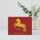 Golden Lotus Petal Muster Pferd auf dunkelrot Postkarte