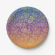 Golden Luxury Paisley on Blue, Lila und Orange Pappteller