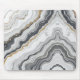 Eine fotorealistische digitale Darstellung einer luxuriösen, flüssigen Marmorstruktur. Elegante, fließende Wirbel aus Weiß, Holzkohlegrau und eine auffallende Vene aus Metallgold verschmelzen nahtlos in ein wunderschönes, nicht wiederholendes Muster. Die Oberfläche ist glatt und glänzend und erinnert an ein Gefühl von Eleganz und Modernität, perfekt für einen raffinierten abstrakten Hintergrund.