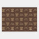 Hier haben wir ein schönes Set für Verpackungspapier, das sich perfekt für die Ferienzeit eignet. Das erste Blatt hat eine goldene Menorah und die Worte Happy Hanukkah auf einem hellbraunen und dunkelbraunen vertikalen gestreiften Hintergrund. Das zweite Blatt hat eine goldene Menorah auf einem hellbraunen und dunkelbraunen vertikalen gestreiften Hintergrund. Das dritte Blatt in diesem Set weist hellbraune vertikale Streifen auf dunkelbraunem Hintergrund auf. Dieses Set ist ein Spiel mit anderen Verpackungspapieren, Taschentüchern, Geschenktaschen und einer Grußkarte.