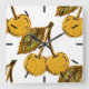 Golden Metallic Cherries Pattern Quadratische Wanduhr