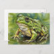 Diese schöne Postkarte zeigt eine detaillierte Aquarellbilderung eines grünen Frosches mit auffallenden goldenen Augen, die sich am Ufer des Wassers ausruhen. Seine lebendige Reflexion im ruhigen Teich verleiht dem Kunstwerk Tiefe und Gelassenheit, sodass es sich so anfühlt, als könnte man fast die sanften Geräusche der Natur hören. Ideal für Naturliebhaber, Tierfreunde und Sammler von Postkarten. Dieses Design eignet sich ideal für Postkreuz, Brieffreunde oder das Hinzufügen einer Touch der Wildnis zu Ihrer Sammlung. Eine charmante Art, die Schönheit der Natur durch die Kunst des Korrespondenzes zu teilen.