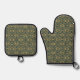 Golden Olive Bloom - Botanisches Fliesenmuster Ofenhandschuh & Topflappen-Set