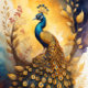 Golden peacock in a golden forest v5 seidenpapier