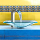 Entdecken Sie die Eleganz unseres Golden Petal Design Tile, wo lebendiges Blau und Gold mit Blumenmotiven verwoben sind. Eine perfekte Mischung aus Natur und Kunst für Ihren Raum. 🌼 ✨